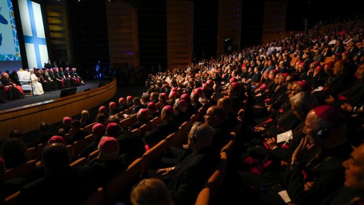 Govor papeža Frančiška med sklepnim zasedanjem Sredozemskih srečanj (Rencontres Méditerranéennes), Svetilniška palača (Palais du Pharo) v Marseillu, 23. september 2023