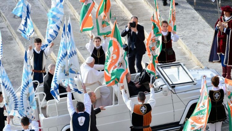 Sveti oče je katehezo med splošno avdienco v sredo, 22. novembra, izpostavil, da evangelij ni samo zame, temveč je za vse. Bog izbere neko osebo, da bi tako prispel do vseh. Klic ni nek privilegij, ampak pomeni služenje.