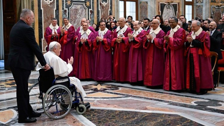 Papež Frančišek je spomnil na deseto obletnico dveh motuproprijev, in sicer Mitis Iudex Dominus Iesus in Mitis et Misericors Iesus, s katerima je preoblikoval postopek za ugotavljanje ničnosti zakonske zveze. V ospredju govora so bili povodi in razlogi za reformo, ki jo je rimska rota izvajala »strokovno in vestno v korist vseh vernikov«, je dejal zbranim sodnikom, odvetnikom, uradnikom in ostalim sodelavcem apostolskega sodišča, ki ki jih je sprejel v avdienco ob začetku novega sodnega leta.