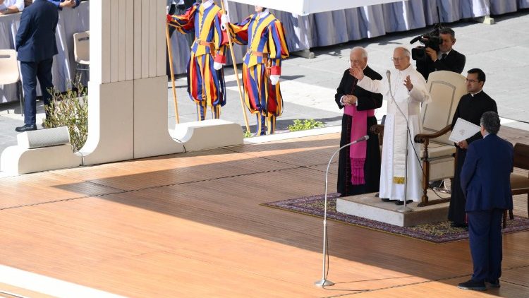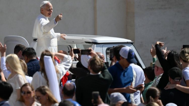 Splošne avdience, ki je potekala na Trgu svetega Petra, se je udeležilo približno 35.000 vernikov in prisluhnilo nadaljevanju cikla jubilejnih katehez o Jezusu Kristusu, ki je naše upanje. Tokratna kateheza je bila namenjena priliki o gospodarju, ki gre iskat delavce za svoj vinograd.