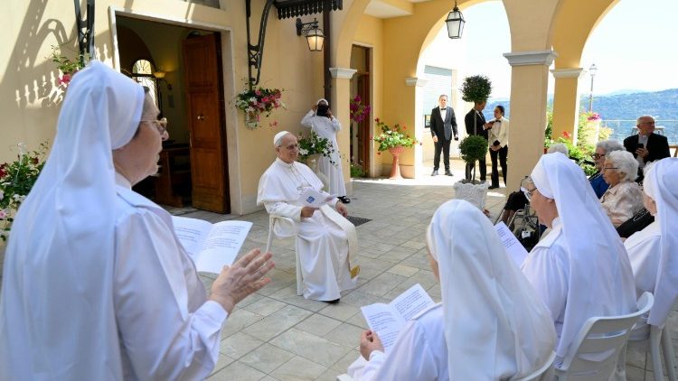 Sveti oče je spomnil na nedeljski evangelij, ki je govoril o Jezusovem obisku pri Marti in Mariji »in danes sem tukaj prav v Betaniji svete Marte,« se je pošalil papež. Po pozdravih in zahvalah se je ob kavi in pijači zadržal z njimi v pogovoru na terasi s pogledom na jezero. Sestra Eliana je dejala, da je papež preprost in sproščen ter se je počutil kot doma. Na koncu srečanja so mu redovnice izročile ikono Svete Družine ter dar za njegovo poslanstvo, saj vedo, da mu je pri srcu karitativnost za revne. Ob odhodu »je bilo v njegovih in naših očeh veliko veselje, pospremile smo ga z aplavzom in še enkrat nas je pozdravil iz avtomobila,« se spominja s. Eliana in doda, da je bila izkušnja resnično čudovita. »Papež je pozdravil in blagoslovil vse oskrbovanke in osebje. Njegova prisotnost je vedno sporočilo, pripomore h krepitvi naše vezi z njim. Naše oskrbovanke so jokale od veselja,« je še dejala redovnica.