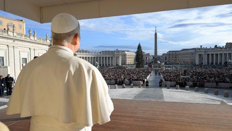 Na Trgu svetega Petra je danes dopoldne potekala še zadnja splošna avdienca v letu 2025. Sveti oče Leon XIV. je povabil, naj razmislimo o tem, kaj je Gospod storil za nas v preteklem letu, si izprašamo vest in prosimo odpuščanje. Bog nas s svojim odpuščanjem vabi, da prestopimo prag novega življenja, ki je oblikovano po evangeliju. To je naš »da« življenju, ki je živeto s prizadevanjem v sedanjosti in usmerjeno v večnost.