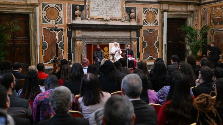 »Različni narodi, kulture in verstva, ki jim pripadate, za vas niso razlog za rivalstvo, ampak povod za sodelovanje in rast v skladu s sinodalnim slogom. Ta metoda poslušanja in razločevanja ni brezbrižna do tem, ki jih obravnavate, ampak ima vlogo leče, s kozi katero opazujete svet. Kot oblika občestva, ki nas povezuje, nas sinodalnost naredi pozorne na pogled tistih, ki so ob nas, in ne samo na to, kar opazujemo; tako se urimo v oblikovanju celovitih vizij, ki spoštujejo kompleksnost, ne da bi podlegle zmedi, in iščejo resnico, ne da bi se bale soočanja.«
