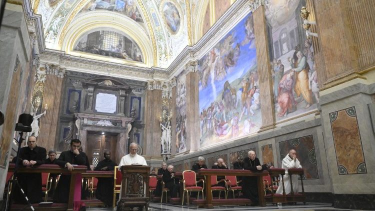 Papež Leon XIV., kardinali in odgovorni za dikasterije rimske kurije so v petek, 27. februarja 2026, popoldne prisluhnili še zadnji meditaciji duhovnih vaj, ki so se začele v nedeljo na temo »Razsvetljeni s skrito slavo«. Norveški škof Erik Varden, trapist in prelat Trondheima, je enajsto meditacijo posvetil upanju.