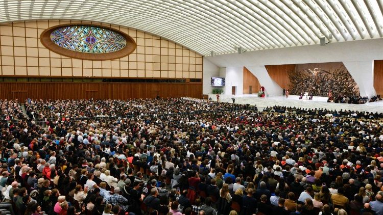 Pri današnji katehezi se bomo zadržali pri globoki in življenjski povezanosti, ki obstaja med Božjo besedo in Cerkvijo, povezanosti, ki jo koncilska konstitucija Dei Verbum opisuje v šestem poglavju. Cerkev je kraj, ki je lasten Svetemu pismu. Po navdihu Svetega Duha je Sveto pismo nastalo iz Božjega ljudstva in je Božjemu ljudstvu namenjeno. V krščanski skupnosti ima Božja beseda, tako rekoč, svoj habitat: v življenju in veri Cerkve najde namreč prostor, kjer lahko razodene svoj pomen in izrazi svojo moč.