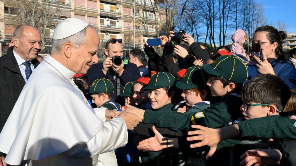 Pred sveto mašo, ki jo je v nedeljo, 15. februarja 2026 daroval v cerkvi svete Marije Kraljice Miru v Ostii, se je papež Leon XIV. na treh prizoriščih srečal z različnimi župnijskimi stvarnostmi: z otroki in mladimi, z ostarelimi, bolnimi, mladimi košarkarji ter z župnijskim pastoralnim svetom. Povsod je izrazil veselje nad srečanji ter dejal, da se počuti dobrodošlega.