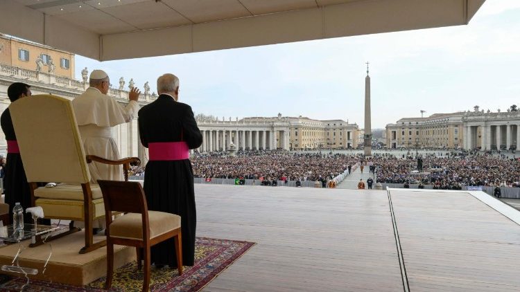 Poudaril je, da je zlasti v naših dneh, zaznamovanih z mnogimi konflikti in vojnami, »veliko znamenje upanja vedeti, da je Cerkev ljudstvo, v katerem v moči vere skupaj živijo ženske in moški različnih narodnosti, jezikov ali kultur«. To je »znamenje vere, ki je vtisnjena v človeštvo« in je »poziv in preroštvo tiste enosti in miru, h katerima Bog Oče kliče vse svoje otroke«.