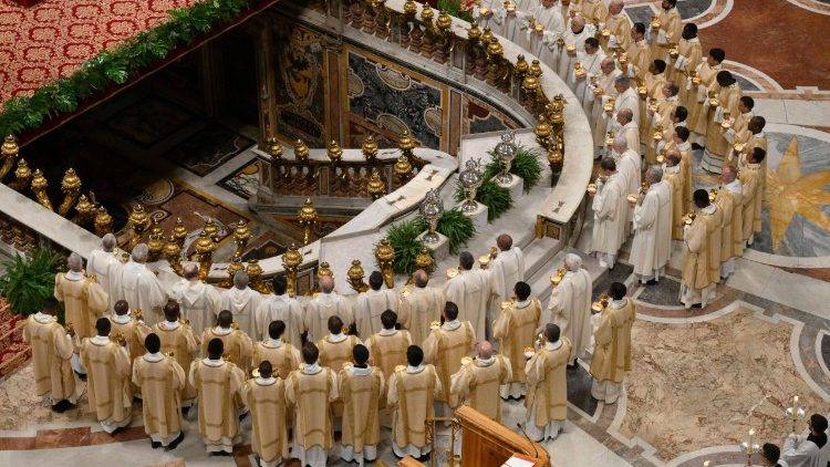 Prvo leto, v katerem predsedujem krizmeni maši kot rimski škof, bi rad z vami razmišljal o poslanstvu, za katerega nas Bog posvečuje kot svoje ljudstvo. To je krščansko poslanstvo, enako Jezusovemu, ne neko drugo. Pri njem vsak sodeluje v skladu s svojo poklicanostjo in v zelo osebni pokorščini glasu Duha, nikoli pa brez drugih, nikoli z zanemarjanjem ali razbijanjem občestva! Škofje in duhovniki, ki obnavljamo svoje obljube, smo v službi misijonarskega ljudstva. Z vsemi krščenimi smo Kristusovo telo, maziljeni po njegovem Duhu svobode in tolažbe, Duhu preroštva in enosti.