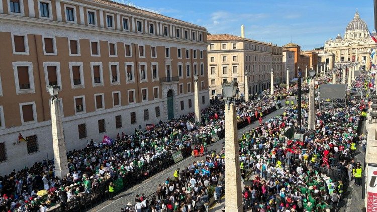 Najstnikom, ki so se 27. aprila, na nedeljo Božjega usmiljenja, na Trgu svetega Petra udeležili evharistije za pokojnega papeža, je poseben pozdrav in spodbudo namenil tudi kardinal Pietro Parolin, ki je vodil slovesno somaševanje. Ti so njegove besede večkrat pozdravili z aplavzom. »Velikonočno veselje, ki nas podpira v času preizkušenj in žalosti, je nekaj, česar se danes na tem trgu lahko skoraj dotaknemo. ... Prihajate iz mnogih krajev … z vami je resnično to dopoldne na Trgu sv. Petra prisoten ves svet! Vam namenjam poseben pozdrav, ... ki vključuje željo, da bi začutili objem Cerkve in ljubezen papeža Frančiška, ki bi se rad srečal z vami, vas pogledal v oči, šel med vas in vas pozdravil. … Nikoli ne pozabite hraniti svojega življenja z resničnim upanjem, ki ima obraz Jezusa Kristusa, Živega in Vstalega v svoji Cerkvi. Z Njim ne bo nič preveliko ali prezahtevno!«