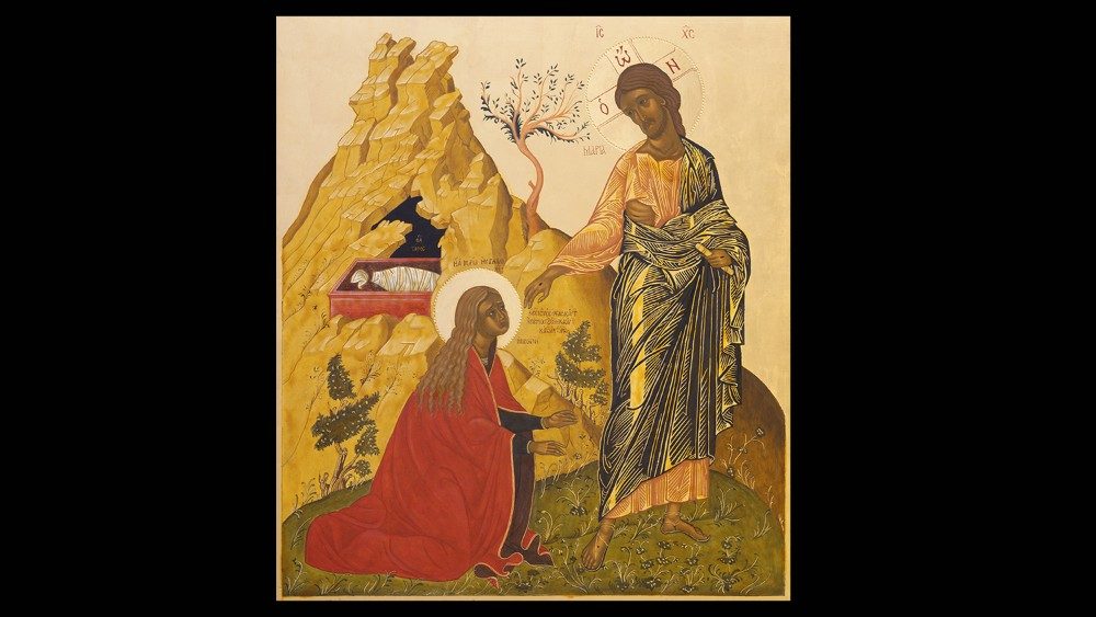 Magdalena u çlirua nga "shtatë demonë"  (Lk 8,2) falë takimit me Krishtin: Ai na çliron nga hijet tona, na tregon e ofron dritën, Ai na do i pari. Kjo është arsyeja pse Maria iu bashkua dishepujve, duke qëndruar pranë Mësuesit Jezus deri në fund, edhe kur të gjithë ishin zhdukur, atje në Kalvar nën kryqin e Jezusit. Dëshira e saj për të qëndruar pranë Krishtit edhe pas vdekjes së tij e bëri Maria Magdalenën dëshmitare të Ringjalljes dhe kështu lajmëtaren e parë të Krishtit të Ngjallur, i cili e dërgon te apostujt për të shpallur atë që askush nuk e priste: fillimin e një jete të re për të gjithë njerëzimin, përuruar nga Jezu Krishti Gjallë. Për këtë arsye, Hipoliti Romak, teolog i shekullit të tretë, e quajti atë "apostulle e Apostujve".