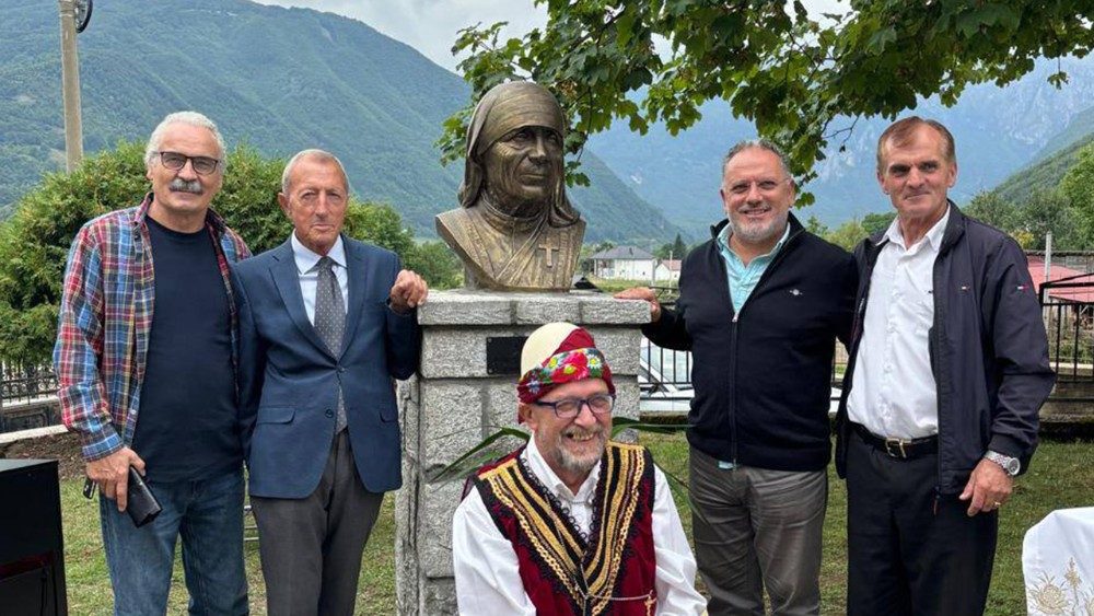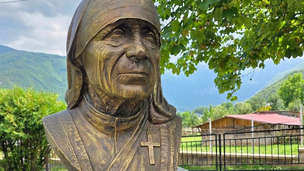 me gëzim të madh, me dashuri e nderim të thellë, jemi mbledhur këtu në Guci për të zbuluar dhe bekuar shtatoren e një figure që nuk është vetëm krenaria jonë, por është pasuri e mbarë njerëzimit: Shën Nënë Terezës, misionares së dashurisë, gruas së përulur që u bë zë i të varfërve dhe nënë e botës.