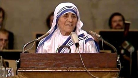 Ja si e kujton e Shën Ganxhe Bojaxhiu, Nënë Terezë 17 tetorin e vitit 1979, kur Juria ndërkombëtare e Akademisë së Shkencave të Suedisë e nderoi me Çmimin Nobel për paqen: