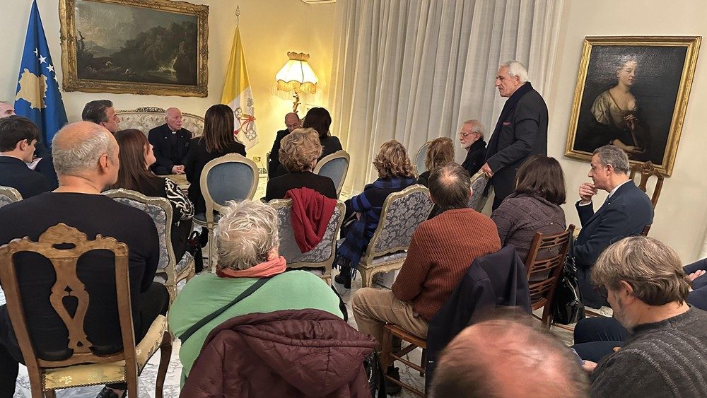 Një mbrëmje me “Porositë e Nënë Terezës për ne”. Dje pasdite 16 dhjetor, pranë selisë së Misionit Republikës së Kosovës në Selinë e Shenjtë, në Romë, në prani të miqve e dashamirësve, organizuar nga Shefi i Misionit të Posaçëm të Kosovë, Vehbi Miftari, në kuadrin e shpalosjes së trashëgiminë së hershme kulturore të vendit, u bë promovimi i librit, në gjuhën italiane, “Porositë e Nënë Terezës për ne” shkruar nga dom Lush Gjergji, meshtar i dioqezës Prizren-Prishtinë, botuar nga shtëpia botuese Velar-Drita. Në pranishëm ishin edhe pronari i shtëpisë botuese Velar, zoti Oscar Serra, Profesor Xhavit Beqiri, i cili prezantoi, shkurt, përmbajtjen e libri para pjesëmarrësve, regjisori Gjon Kolndrekaj e shumë miq tjerë.