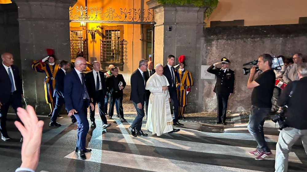 Papa Prevost u largua nga Castel Gandolfo mbrëmë, rreth orës 21:00. Një orë më parë kishte përshëndetur shumë njerëz të mbledhur në rrugë, në pritje të largimit të tij. Kishte rënë muzgu, kur Leoni XIV i kaloi portat e rezidencës papnore të Castel Gandolfos dhe u ndal për të folur me disa besimtarë në festë. Pak më vonë Papa Leoni XIV iu përgjigj pyetjeve të gazetarëve e, në lidhje me takimet e mundshme me udhëheqës të caktuar, pohoi se "dikush" është në kontakt të vazhdueshëm me të.