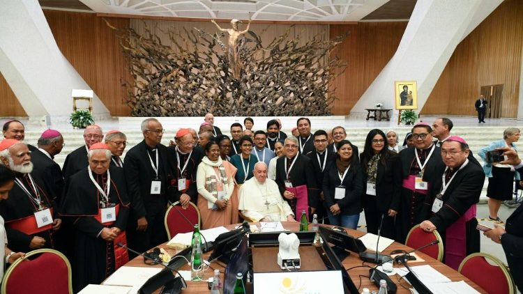 Baba Mtakatifu amewashukuru na kuwapongeza wawezeshaji wakuu kutoka Sekretarieti kuu ya Sinodi waliojisadaka bila ya kujibakiza, ili kuhakikisha kwamba, maadhimisho ya Sinodi ya XVI ya Maaskofu yanafanikiwa. Amemshukuru Padre Davide Piras aliyewaandalia Mababa wa Sinodi Andiko la Mtakatifu Basil. Amewataka Mababa wa Sinodi kuendelea kulitafakari Andiko hilo, kwani ni msaada mkubwa katika maisha na utume wao. Amewashukuru: Kardinali Mario Grech, Katibu mkuu wa Sinodi za Maaskofu pamoja na Kardinali Jean-Claude Holleric, Mwezeshaji mkuu wa Maadhimisho ya Sinodi ya Maaskofu hawa ni watu waliokuwa mstari wa mbele katika maadhimisho ya Sinodi ya XVI ya Maaskofu. Sr. Nathalie Becquart, Katibu mkuu msaidizi wa Sinodi za Maaskofu; Askofu Luis Marín de San Martín, O.S.A. Katibu mkuu msaidizi. Wengine ni pamoja na Padre Giacomo Costa, Padre Riccardo Battocchio, Giuseppe Bonfrate. Lakini Sr. Maria Grazia Angelini pamoja na Padre Timothy Radcliffe wameendesha mafungo ya kiroho kwa Mababa wa Sinodi pamoja na kutoa tafakari za maisha ya kiroho kama sehemu ya ujenzi wa mawasiliano katika Roho. Baba Mtakatifu Francisko ametambua pia mchango mkubwa uliotolewa na watu “waliofichwa nyuma ya pazia”, wote wamejisadaka ili kufanikisha maadhimisho ya Sinodi ya XVI ya Maaskofu. Wote hawa Baba Mtakatifu Francisko kutoka katika sakafu ya moyo wake amewashukuru wote.
