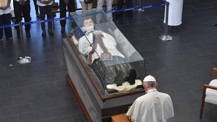 Після спільного обіду з єпископами, що послужив нагодою для дружнього спілкування, та після короткого відпочинку, Святіший Отець вирушив до президентського палацу, здійснюючи візит ввічливості до виконуючого обов’язки президента та прем’єр-міністра.