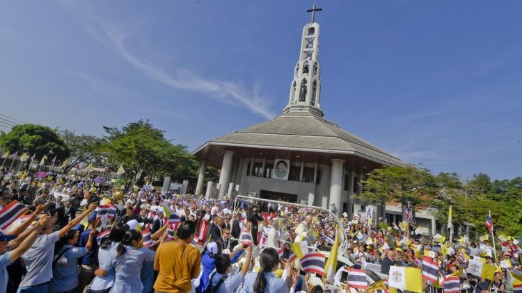 Третій день перебування в Таїланді, Папа Франциск розпочав відвідинами санктуарію блаженного Ніколяса Бункеда Кітбамрунґа, віддаленого 30 кілометрів він столиці Бангкоку. Санктуарій розташований поблизу місцевості, де народився перший священомученик Таїланду. В  цьому храмі відбулась зустріч Святішого Отця з єпископатом Таїланду та Федерації Єпископських Конференцій Азії, а в парафії святих Петра й Павло, навпроти санктуарію, з Вселенським Архиєреєм зустрілись священики та богопосвячені особи, яких у країні налічується коло 2 тисяч