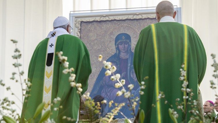 Мати Божа і Мати наша, випроси для нас в Бога, Отця милосердя, аби це важке випробування завершилося, щоби повернувся горизонт надії та миру. Як у Кані, заступайся перед Божественним Сином, просячи втішити родини хворих і жертв та відкрити їхні серця на довіру.