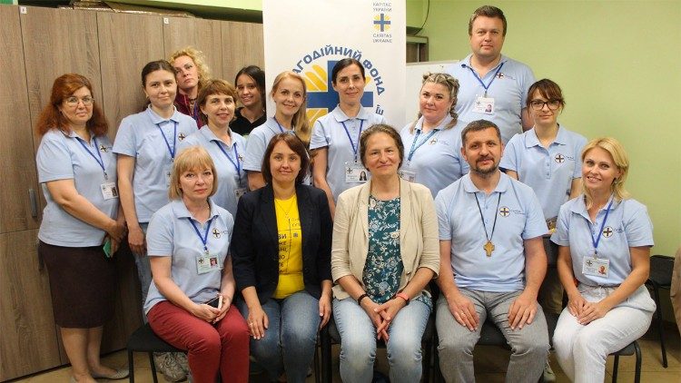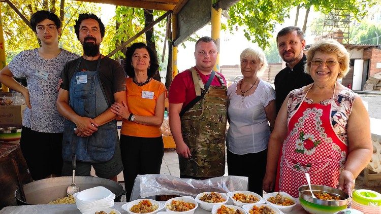 Про діяльність цього осередку, який вже надав допомогу 30 тисячам осіб, що постраждали від військових дій, розповіли його директор отець Ігор Пагулич та його дружина Марія Пагулич, яка є координатором проектів Карітасу. Отець Ігор зазначив, що два рази в тиждень Карітас також пропонує потребуючим готові обіди, до приготування яких долучаються волонтери. Щоразу на такі обіди приходять приблизно 160 осіб, більшість з яких – переселенці. Пояснюючи корисність такої допомоги, отець Ігор зауважив, що переселенці, які нещодавно прибули до міста, часто не мають необхідних речей (посуду, газової плити), аби приготувати собі їжу.