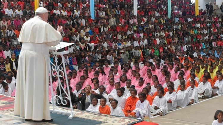 «Дорога молоде з Акамасоа, хочу залишити вам особливе послання: ніколи не здавайтеся перед обличчям пагубних наслідків бідності, не піддавайтеся спокусам легкого життя чи зосередження на собі самих», – сказав Глава Католицької Церкви, подякувавши Фанні за свідчення та закликавши молодь стати продовжувачами справи попередників.