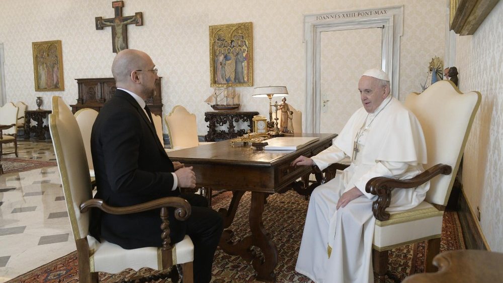 Сьогодні, 25 березня 2021 р., Папа Франциск прийняв на аудієнції в Апостольському палаці у Ватикані Високоповажного Пана Дениса Шмигаля, Прем’єр-міністра України, який опісля зустрівся з Державним Секретарем Святого Престолу кардиналом П’єтро Пароліном, якого супроводив архиєпископ Пол Річард Ґаллаґер, Секретар у справах стосунків з державами.