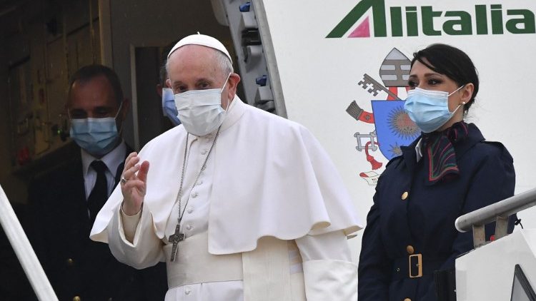 Після 15-місячної перерви у небо знову піднявся літак з Наступником святого Петра на борту. Вранці, 5 березня 2021 р., з Римського міжнародного аеропорту Фюмічіно злетів Airbus330 італійської авіакомпанії «Alitalia», який, здолавши три тисячі кілометрів, перетнувши повітряний простір Італії, Греції, Кіпру, Ізраїлю та Йорданії, після 4,5-годиного перельоту, доставить Святішого Отця та його супровід до Іраку, що стане 52-ю країною, яку він відвідає за період свого понтифікату, що розпочався 8 років тому.