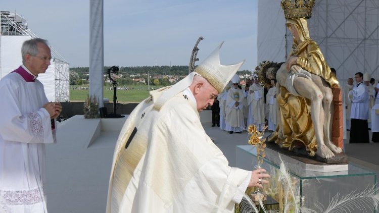 Свята Меса, яку Папа Франциск 15 вересня 2021 р. очолив у національному санктуарії Матері Божої Семи скорбот в Шаштіні, й у якій, згідно з даними місцевої влади, взяли участь коло 60 тисяч прочан, була останнім велелюдним заходом Апостольської подорожі Папи Франциска до Словаччини, що стала 54-ю країною, яку він відвідав під час свого понтифікату. Тож перед тим, як завершити Євхаристійне богослужіння своїм благословенням, Святіший Отець звернувся до присутніх з подячним словом.