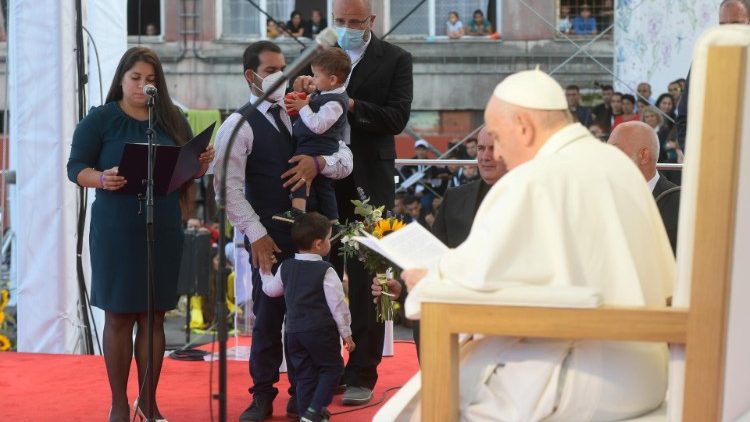 «Дорогі браття й сестри, надто часто ви були предметом упередженості та немилостивих суджень, дискримінаційних стереотипів, дифамаційних слів і жестів. Через це всі ми збідніли, стали біднішими на людяність. Щоби повернути гідність, нам потрібно перейти від пересудів до діалогу, від замкнутості до інтеграції», – наголосив Святіший Отець, покликаючись на свідчення Ніколи та Рене, що є цінним посланням про те, що «там, де є піклування про особу, де є душпастирство, де є терпеливість і конкретність, там дозрівають плоди».