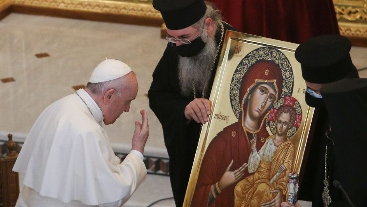 «Бо якщо відкладемо абстрактні теорії та спільно трудитимемо пліч-о-пліч, наприклад, у милосерді, освіті, сприянні людській гідності, то відкриватимемо брата, а сопричастя дозріватиме саме в собі на Божу славу. Кожен збереже власні способи та стиль, це зрозуміло, але спільна праця з часом сприятиме зростанню згоди та виявиться плідною», – переконаний Наступник святого Петра, який у цьому контексті згадав про позитивний досвід у давньому храмі «Panaghia Chrysopolitissa» в Пафосі, який належить Церкві Кіпру, але згідно з рішенням Хризостома І був наданий для богослужінь представників різних конфесій, ставши, за словами Папи Франциска, «знаком сопричастя віри й життя під поглядом Божої Матері, Яка збирає Своїх дітей».