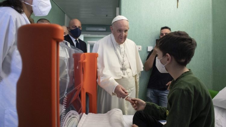 Ввечері, 19 березня 2022 р., Папа Франциск прибув до ватиканської педіатричної лікарні «Bambino Gesù», де відвідав відділення, в якому госпіталізовані діти, що цими днями прибули з України. На цей час у відділеннях лікарні перебувають 19 дітей, а загалом, від початку війни їх прибуло приблизно 50. Йдеться про пацієнтів з різними недугами (онкологічні, неврологічні та інші), що втекли в перші дні війни, а також є діти, що прибули нещодавно із важкими пораненнями.