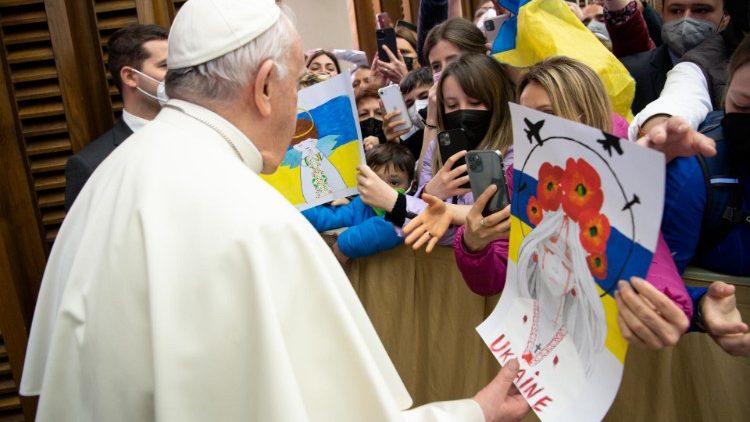 «Цього року ви відзначаєте Великий Тиждень і Великдень в особливий спосіб: разом із багатьма гостями з України. Великдень – це родинне свято, а ви, відчинивши їм свої домівки, стали їхньою родиною. І хоч більшість із них, згідно зі східною традицією, будуть відзначати ці свята через тиждень, ви вже тепер разом вдивляєтеся в Розіп’ятого та очікуєте Христового воскресіння та миру в Україні», – сказав Святіший Отець, уділяючи від щирого серця своє благословення.