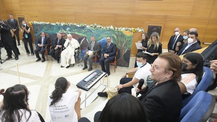 Серед учасників зустрічі був лідер відомого ірландського гурту «U2» Боно Вокс, який подякував за досвід участі в проекті, покликаному сприяти культурі зустрічі. Він поставив Папі запитання про те, чи здатність жінок перемінювати світ можемо вважати також «суперсилою», придатною для пропагування турботи про спільний дім. Відповідаючи, Святіший Отець зазначив, що загалом прийнято говорити про «матір-землю, а не про батька-землю». Він також підкреслив, що жінки мають «природний дар» вміти змінювати речі.