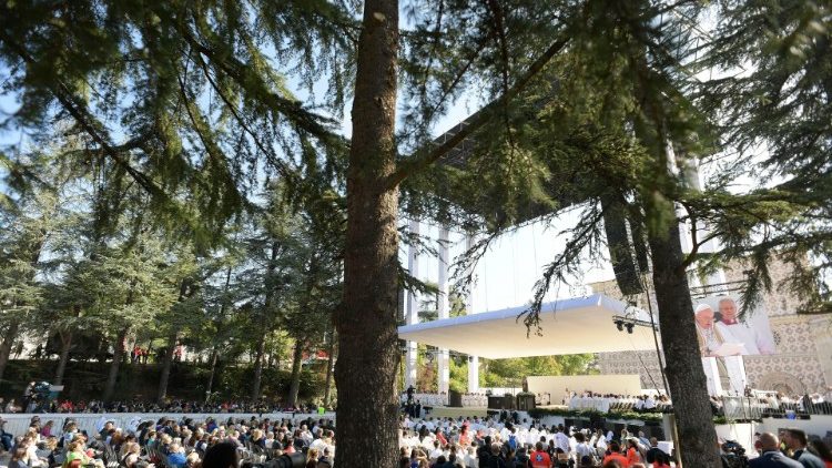 «Дорогі браття й сестри, нехай же Л’Аквіла дійсно буде столицею прощення, миру та примирення!» – закликав Наступник святого Петра, ввіривши постанову жити згідно з Євангелієм заступництву Діви Марії. «Нехай же Її заступництво здобуде для всього світу прощення та мир», – побажав він.