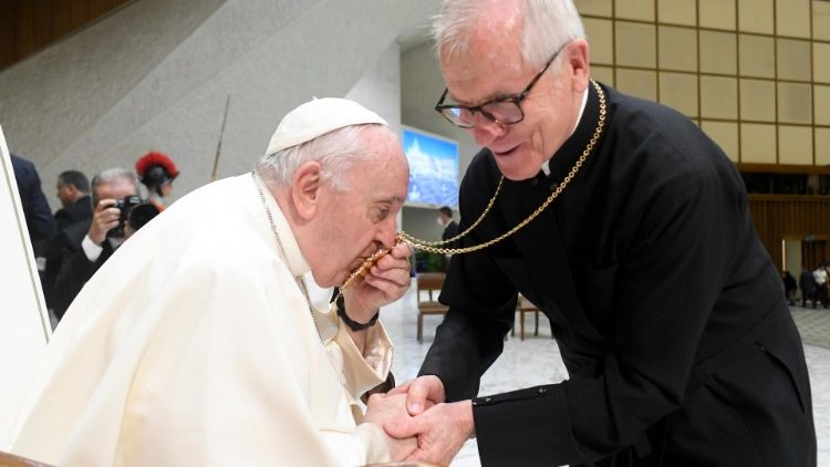 «Знову заохочую випрошувати у Господа миру для дорогого українського народу, який вже шість місяців страждає від жахіття війни. Складаю побажання, аби чинилися конкретні кроки, щоби покласти край війні та запобігти загрозі ядерної катастрофи на Запорізькій АЕС. Ношу в серці полонених, насамперед, тих, яку перебувають в умовах уразливості, та прошу відповідну владу докласти зусилля для їх звільнення, і маю на думці також дітей, багатьох загиблих, а також багатьох біженців, чимало з яких присутні тут», – цими словами, сказаними наприкінці загальної аудієнції, що в середу, 24 серпня 2022 р., відбувалася в залі Павла VI у Ватикані, Папа Франциск знову скерував думку до України, що вже півроку страждає від жорстокої збройної агресії з боку Російської Федерації.