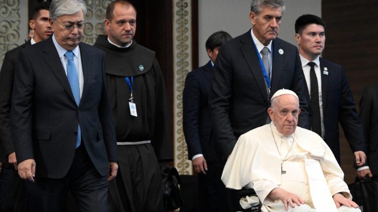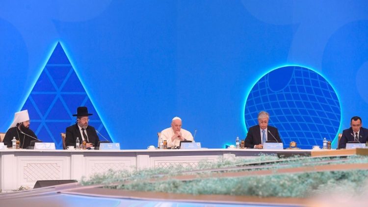 Пригадуючи започаткування Конгресу лідерів світових і традиційних релігій, що відбувається в столиці Казахстану кожних три роки, він відмітив, що натхненням для його організаторів став День молитви за мир у світі, який Іван Павло II вперше провів у 2002 році в Ассізі після терактів, які сталися у США у вересні 2001 року. «На жаль, псевдорелігійний тероризм, екстремізм, радикалізм, націоналізм, що прикривається священністю, дотепер викликають страхи та побоювання щодо релігії», – зауважив Святіший Отець. Він звернув увагу на те, що в Декларації конгресу зазначається, що екстремізм, радикалізм, тероризм та будь-яке підбурювання до ненависті, ворожнечі, насильства та війни, які б мотиви чи цілі вони не ставили перед собою, не мають нічого спільного зі справжнім релігійним духом, і повинні відкидатися у найбільш рішучий спосіб (пор. № 5).