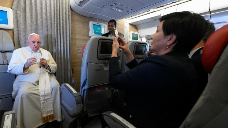 Повертаючись із закордонних Апостольських подорожей, Папа Франциск дає прес-конференцію, відповідаючи на запитання журналістів, які супроводжують його на борту літака, починаючи від представників преси приймаючої країни. Не стала винятком і 38-ма Апостольська подорож – візит у Казахстан для участі в конгресі релігійних лідерів, яка завершилася 15 вересня 2022 року.