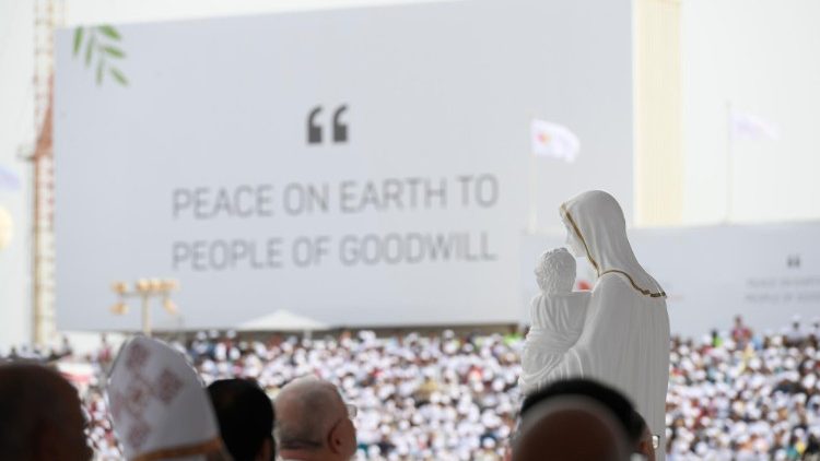 Свої роздуми під час проповіді Святіший Отець розпочав із слів пророка Ісаї про Месію: «Великою буде його могутність і мир не матиме кінця». Він зазначив, що це може здаватися суперечністю, оскільки в світі бачимо, що чим більше шукають могутності, тим більші загрози для миру. Однак, Ісая називає Месію «Князем миру». «Велич його могутності користується не силою насильства, а слабкістю любові», – сказав проповідник, підкреслюючи, що силою Христа є любов, і також нас Він наділяє цією силою. І йдеться про те, щоби любити завжди та любити всіх.