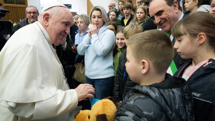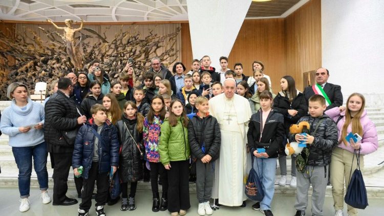 Цими днями італійська дієцезія Теджіано-Полікастро приймає понад тридцять дітей з України, зокрема, з Києва, Дніпра, Херсона, Харкова, Запоріжжя. Деякі з них втратили батьків на війні, інші вже місяцями не бачаться з ними, бо ті потрапили в полон. У середу, 18 січня 2023 р., вони взяли участь у загальній аудієнції зі Святішим Отцем, що відбувалася в залі Павла VI у Ватикані.