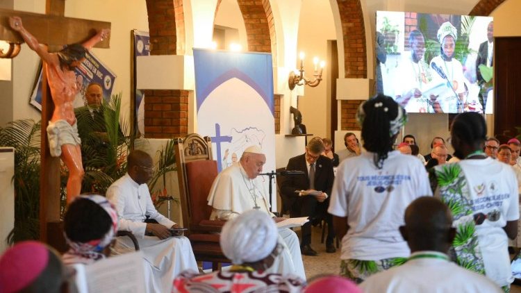 У середу, 1 лютого 2023 р., пополудні, перебуваючи в Апостольській Нунціатурі в Демократичній Республіці Конго, Папа Франциск зустрівся з особами, які зазнали насильства, внаслідок бойових дій на сході Демократичної Республіці Конго. Розпочинаючи свою промову, він подякував постраждалим від насильства, які поділилися своїми свідченнями. «Це нелюдське насильство, яке ви побачили на власні очі і відчули на власній шкірі, шокує. Немає слів; залишається тільки плакати, мовчати», – зазначив він.