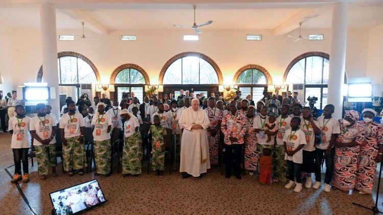 Святіший Отець виразив близькість з усіма мешканцями Сходу країни. «Ваші сльози – це мої сльози, ваш біль – це мій біль, – сказав він. – Кожній сім’ї в жалобі, кожній сім’ї, яка була вимушено переселена внаслідок спалених сіл та інших воєнних злочинів, тим, хто пережив сексуальне насильство, кожній пораненій дитині та дорослому я кажу: я з вами, хочу принести вам Божі обійми. Його ніжний і співчутливий погляд спрямований на вас. У той час, як насильники ставляться до вас як до предметів, Отець, що на небі, бачить вашу гідність і каже кожному з вас: “Дорогоцінний ти в Моїх очах, бо ти гідний пошани, і Я люблю тебе” (Іс. 43, 4). Брати і сестри, Церква є і завжди буде на вашому боці. Бог вас любить і не забув про вас, але нехай і люди пам’ятають про вас!»