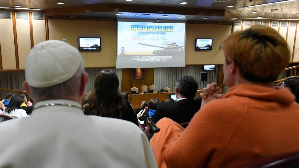 «Коли Бог створив людину, то сказав, аби вона порала землю, дбала про зростання, щоби зробити її гарною. Дух війни є протилежним: нищити, руйнувати, не давати зростати, знищувати всіх, чоловіків, жінок, дітей, похилих віком…» – такими думками поділився Папа Франциск, промовляючи до учасників показу документального фільму «Свобода у вогні: Боротьба України за свободу», знятого режисером Євгеном Афінеєвським.