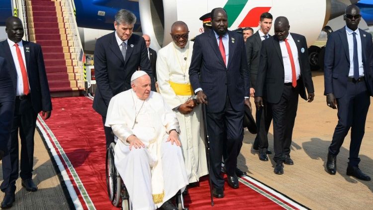 Багаторічні очікування південносуданців завершилися. У п’ятницю, 3 лютого 2023 р., о 14:45 місцевого часу, (що збігається з київським), у міжнародному аеропорту Джуби, столиці Південного Судану, приземлився літак, яким до цієї країни прибув Папа Франциск. Цей візит має екуменічний характер та здійснюється разом з Кентерберійським Архиєпископом Джастіном Уелбі та Модератором Генеральної Асамблеї Церкви Шотландії преподобним Ієном Ґріншілдсом. Саме англіканці та пресвітеріанці є найбільшими, після католиків, що становлять половину населення, християнськими конфесіями в країні.