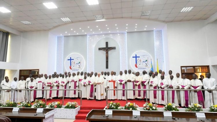 Вранці 3 лютого 2023 р., Папа Франциск попрощався з персоналом Апостольської нунціатури в Кіншасі, яка стала його гостинним домом в часі Апостольської подорожі до ДР Конго, та від’їхав до осідку єпископської конференції. Четвертий і заключний день його перебування в цій країні завершився зустріччю з єпископатом, що нараховує понад 60 ієрархів, які служать у 48 територіальних структурних одиницях Церкви. У своєму слові Святіший Отець зосередився на особливостях єпископського служіння, яке пов’язане, зокрема, із двома вимірами – Божою близькістю і пророцтвом для людей.