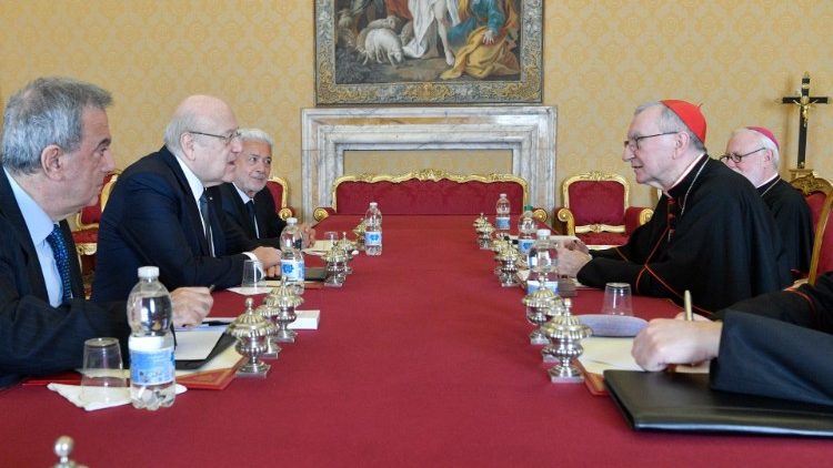 У четвер, 16 березня 2023 р., Папа Франциск прийняв на аудієнції у Ватикані в.о. Прем’єр-Міністра Лівану Наджиба Мікаті, який опісля також зустрівся із кардиналом П’єтро Пароліном, Державним Секретарем Святого Престолу, якого супроводжував архиєпископ Пол Річард Ґаллаґер, Секретар у справах стосунків з державами і міжнародними організаціями.