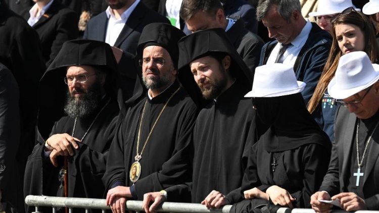 «Браття й сестри, зібравшись тут цього ранку, ми відчуваємо радість від того що є святим Божим людом: всі ми народжуємося з цього покликання; це Він нас скликав, через це ми – Його народ, Його отара, Його Церква. Він зібрав нас, хоч і відрізняємося між собою та належимо до різних спільнот, щоби велич Його любові об’єднала всіх в одних обіймах. Бути разом – прекрасно: єпископи і священики, богопосвячені особи та миряни. Прекрасним є розділити цю радість із екуменічними делегаціями, з очільниками єврейської спільноти, з представниками цивільних інституцій і дипломатичного корпусу. В цьому й полягає католицькість: всі ми, християни, покликані на ім’я добрим Пастирем, покликані приймати та поширювати Його любов, робити його кошару інклюзивною, яка ніколи нікого не виключає», – наголосив Папа.
