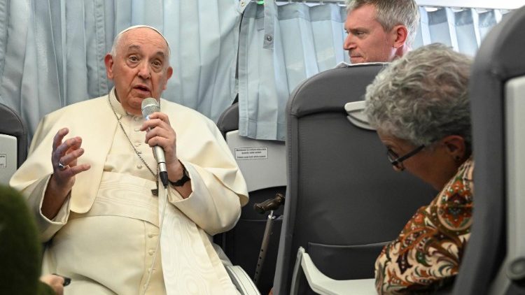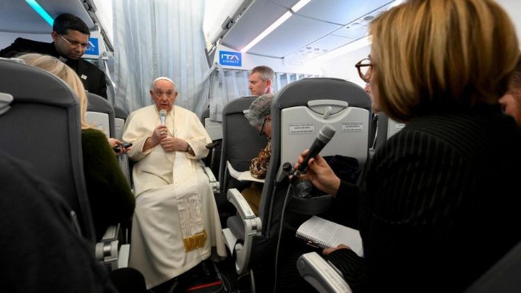 Відповідаючи на запитання іспанської журналістки, чи Святий Престол готовий дати позитивну відповідь на прохання очільника українського уряду, Святіший Отець нагадав, що «Святий Престол вже виступав посередником у деяких випадках обміну полоненими, і через посольство все вдалося, тож думаю, що може вдатися і це». «Це справедлива річ, і ми повинні допомогти, щоб це не було casus belli, а справою гуманності. Це проблема людяності, перше ніж військової здобичі чи воєнного переміщення. Всі людяні жести допомагають, натомість жести жорстокості не допомагають. Ми повинні робити все те, що по-людському є можливим», – сказав Папа, а тоді додав: «Я думаю також, хочу сказати це, про жінок, які прибувають до наших країн: в Італію, Іспанію, Польщу, Угорщину». Він зазначив, що багато з них прибувають самі з дітьми, й правдою є те, що їм тепер надається допомога. «Але ми повинні не втратити ентузіазм чинити це, бо якщо спаде ентузіазм, ці жінки залишаться без захисту, ризикуючи потрапити в руки стерв’ятників, які завжди кружляють, вишукуючи такі ситуації. Будьмо уважними, щоб не втратити цю тенденцію допомагати біженцям, і це стосується всіх», – підкреслив він.