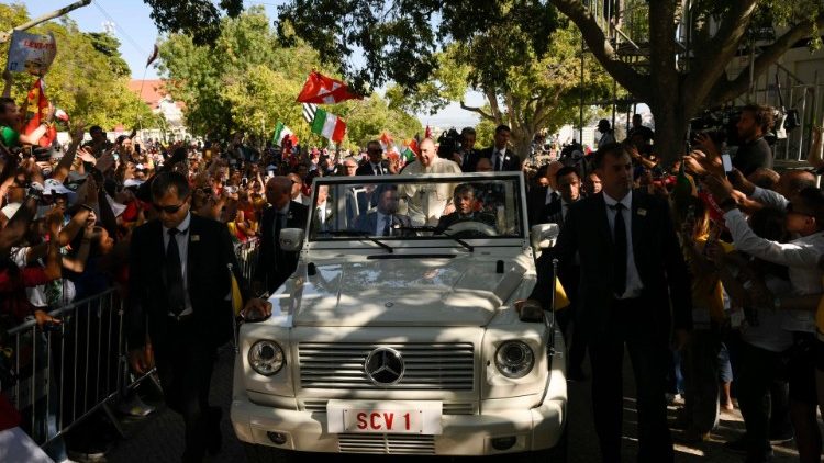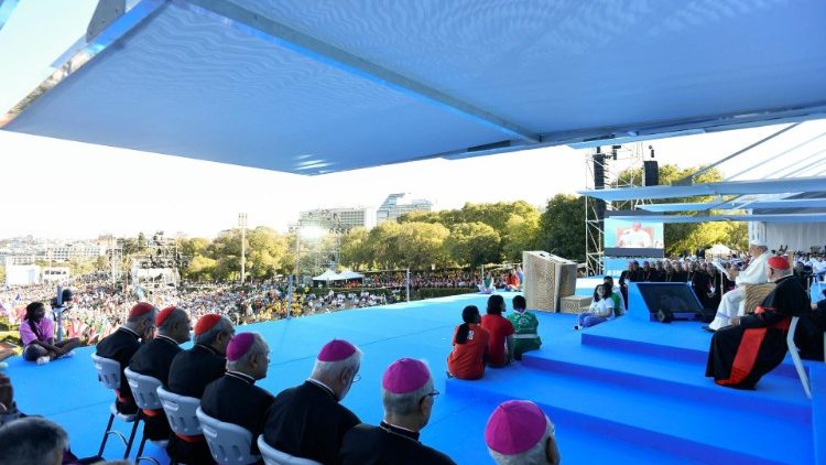 Після того, як Світові Дні Молоді, розпочавшись 1 серпня, відбувалися у формі молитовних зустрічей і катехиз, а від 2 серпня тривав візит Папи Франциска в Португалію, настав час об’єднання обох подій. Ввечері, 3 серпня 2023 р., в парку Едуарда VI в Лісабоні відбулося «свято зустрічі», що є одним зі сталих елементів програми СДМ, коли до його учасників офіційно приєднується Наступник святого Петра. Церемонія передбачала, серед іншого, коротке вітальне слово Лісабонського Патріарха, хореографічну постановку, внесення прапорів учасників СДМ і символів зустрічі, якими є дерев’яний хрест та ікона, які молоді подарував святий Іван Павло ІІ. Далі розпочалася Літургія слова, й після читання з Євангелії промовляв Папа Франциск.