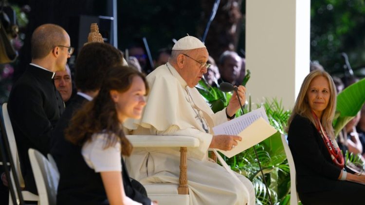«Друзі, я радий бачити вас як живу освітню спільноту, відкриту до реальності, для якої Євангеліє не є прикрасою, а надихає як частини так і ціле», – сказав Папа Франциск університетській молоді, зустрічаючись із ними в осідку Португальського католицького університету в Лісабоні в четвер, 3 серпня 2023 р., другий день своєї Апостольської подорожі, присвяченої Світовому дню молоді. Ця зустріч Святішого Отця супроводжувалася кількома свідченнями хлопців та дівчат, які торкалися енцикліки Laudato si', ініціативи Економіка Франциска, Глобального освітньо-виховного пакту, а також культури зустрічі.