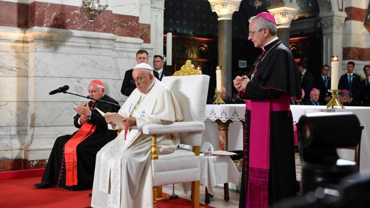 Прибувши в п’ятницю, 22 вересня 2023 р., з коротким візитом до Марселя, щоби взяти участь у «Середземноморських зустрічах», Папа Франциск відразу ввірив плоди цих зустрічей заступництву Пресвятої Богородиці. Із аеропорту він від’їхав до базиліки Нотр-Дам-де-ля-Ґард, де відбулася зустріч із місцевим духовенством.