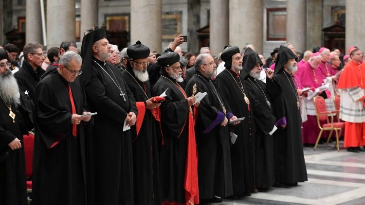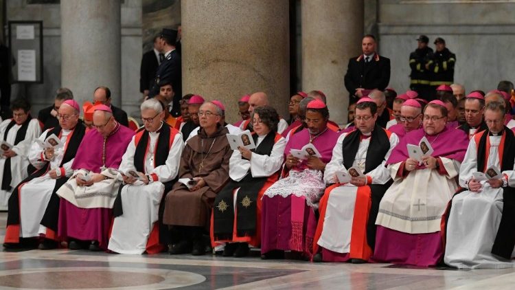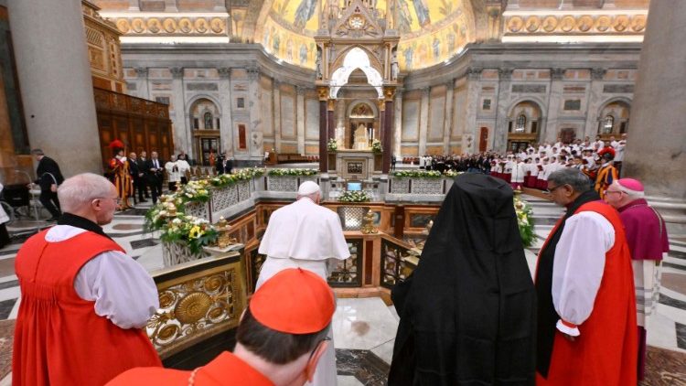 Перед початком богослужіння Папа Франциск, разом з Кентерберійским архиєпископом Джастіном Уелбі та митрополитом Полікарпом, представником Константинопольського патріархату, помолилися перед гробом святого Павла. В спільній молитві єдналися представники різних конфесій, які служать у Римі, а також члени Міжнародної змішаної комісії богословського діалогу між католицькою та орієнтальними православними Церквами, що відзначає двадцятиріччя своєї діяльності.